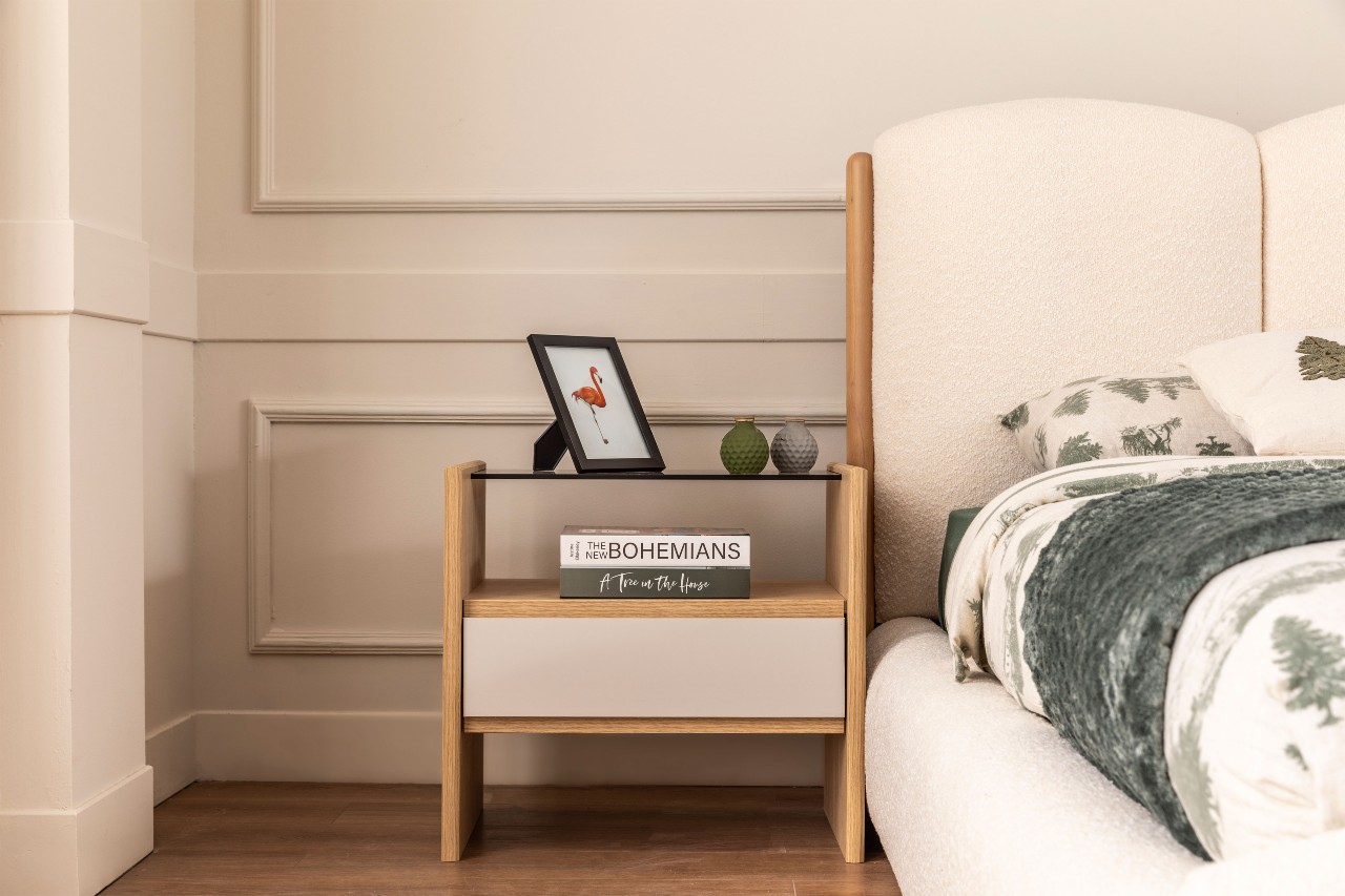 Doğal sıcaklıkla modern çizgileri birleştirir; göz yormayan duruşuyla yatak başında huzurlu ve tamamlayıcı bir denge yaratır.