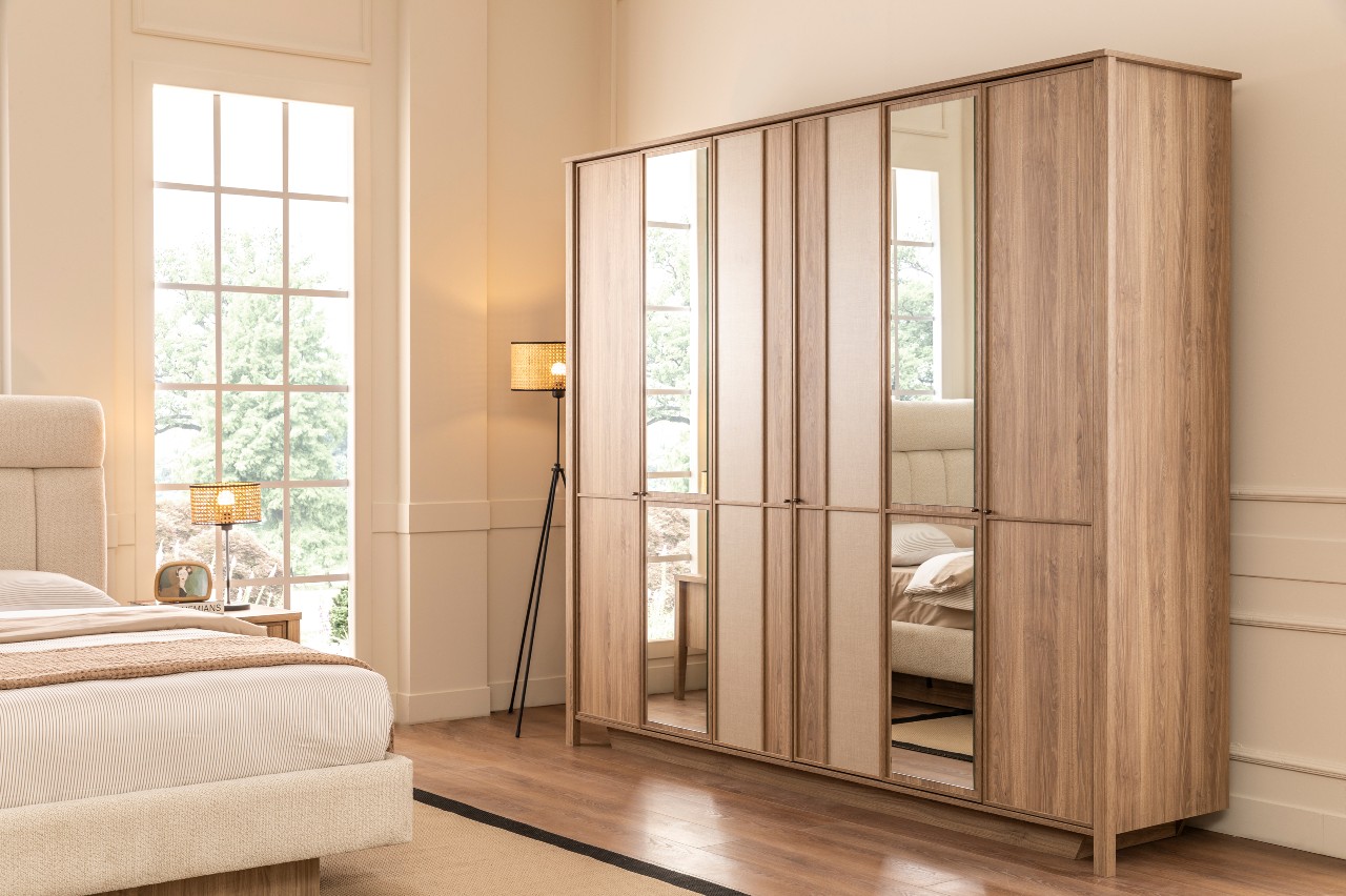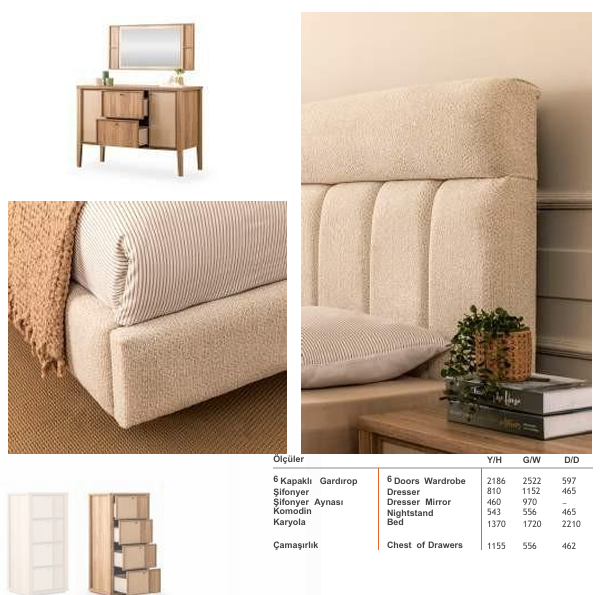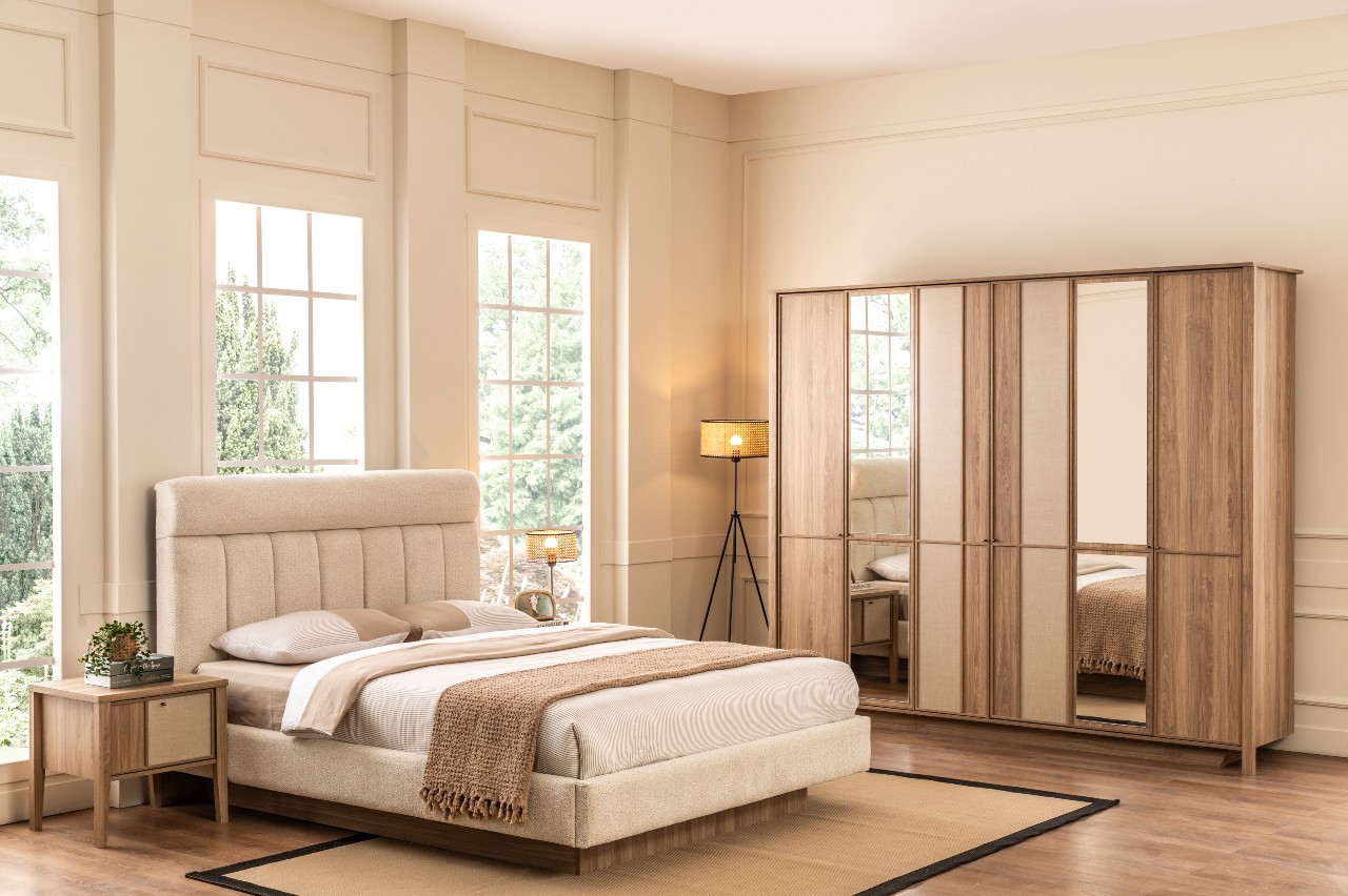 Modern ve huzurlu karakteriyle yatak odasında bütünlüğü güçlendirir; yalın tasarım diliyle dengeli bir duruş sunar.