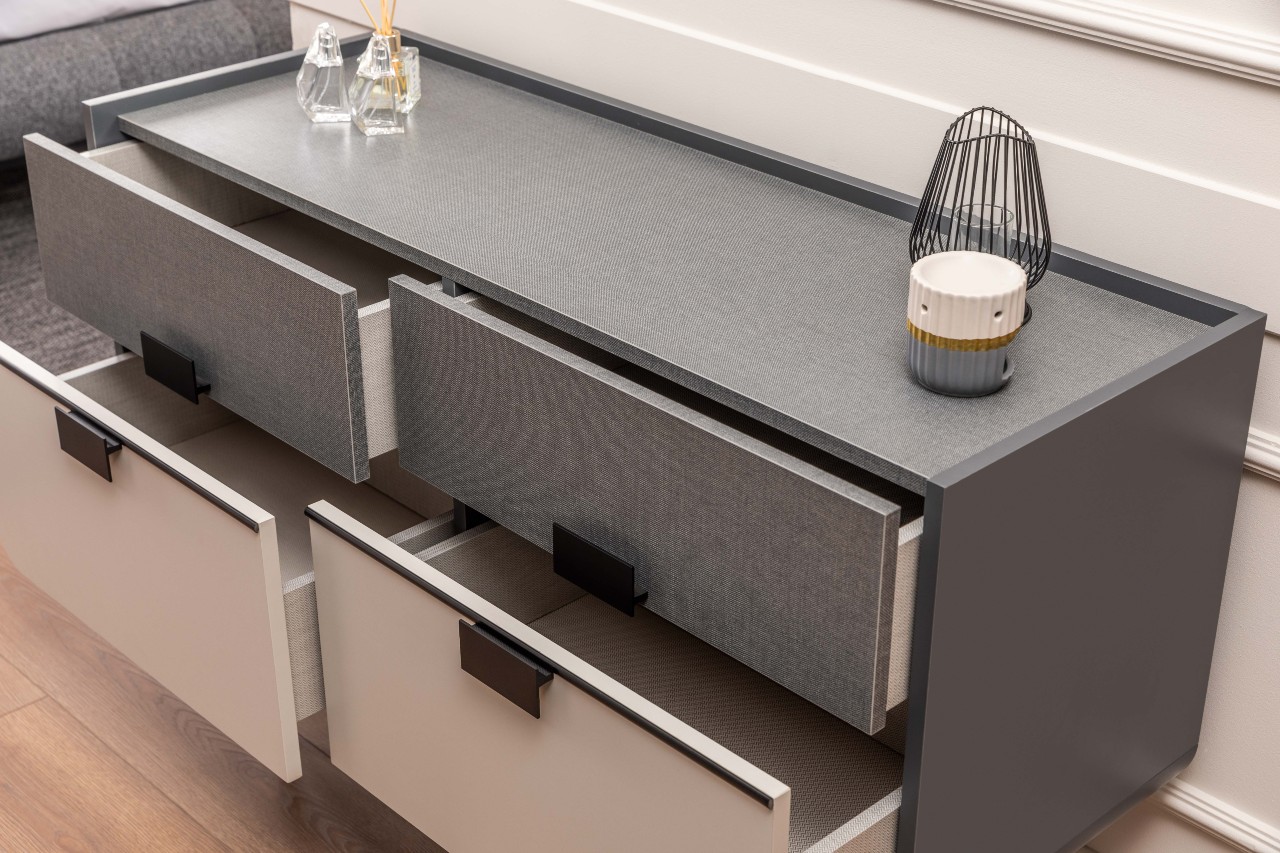 Depolama ihtiyacınızı düzenli şekilde çözer; yatak odasında dağınıklığı azaltıp daha net ve derli toplu bir görünüm sunar.